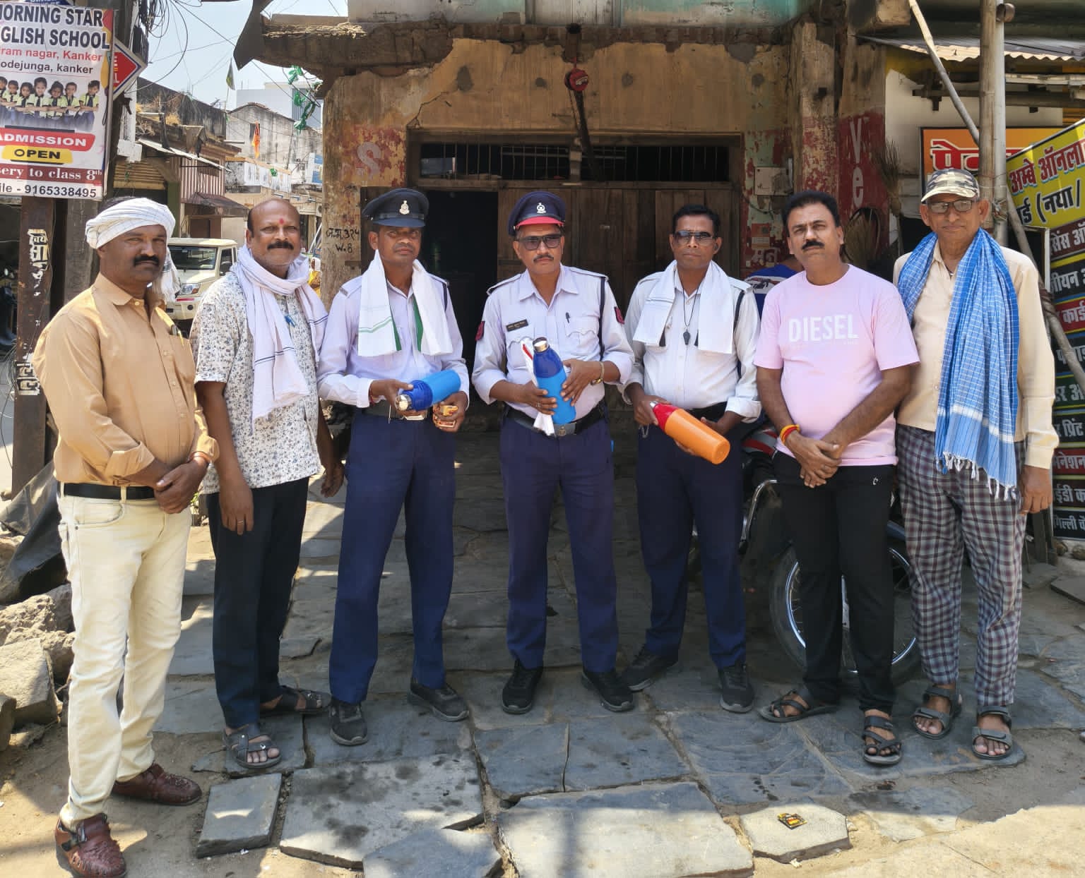 भीषण गर्मी में ड्यूटी करते ट्रैफिक जवानों को “जन सहयोग” ने राहत पहुंचाईठंडे पानी की बोतल,बिस्किट,टॉवेल देकर मानवता का परिचय दिया